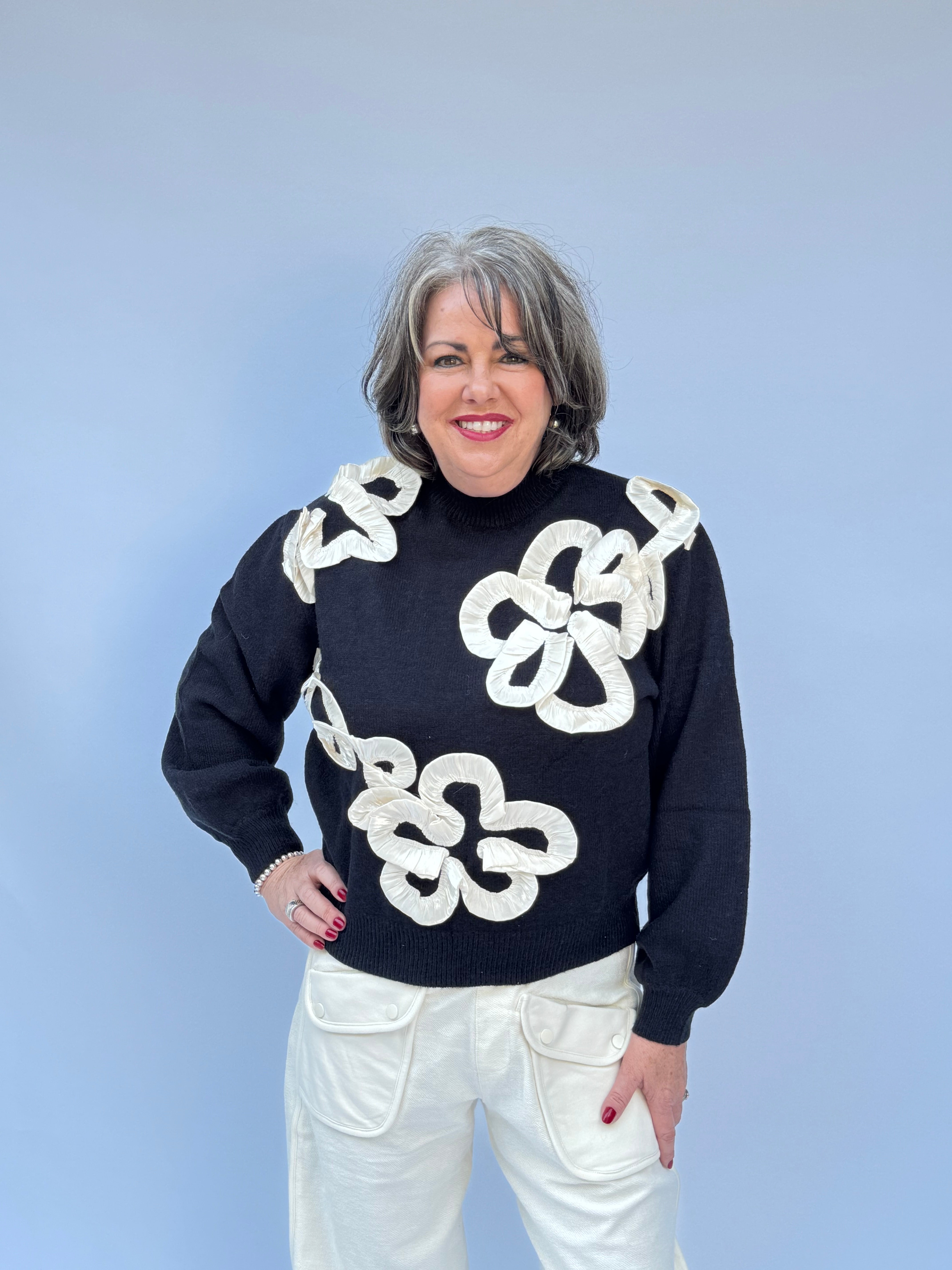 Black Sweater with Cream 3D Floral