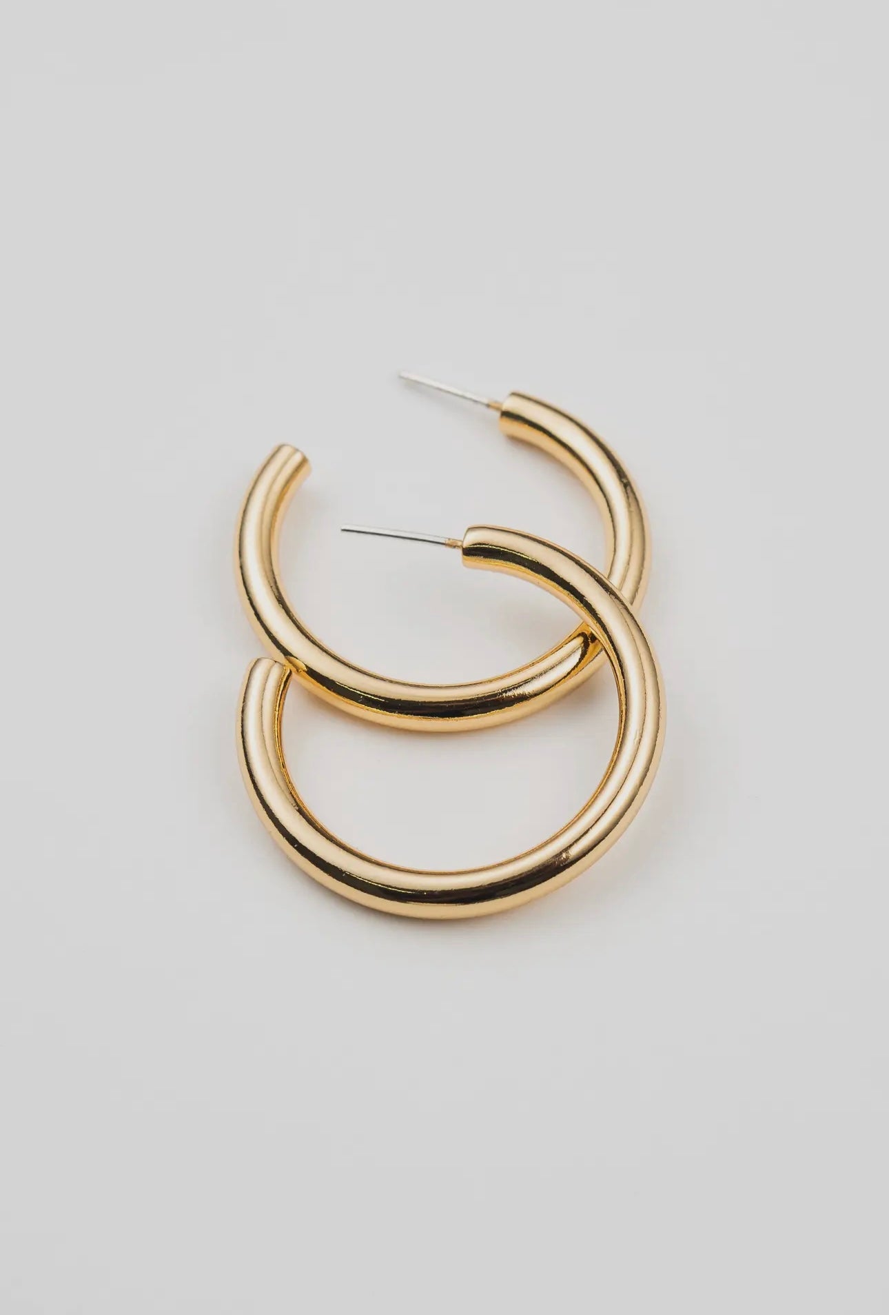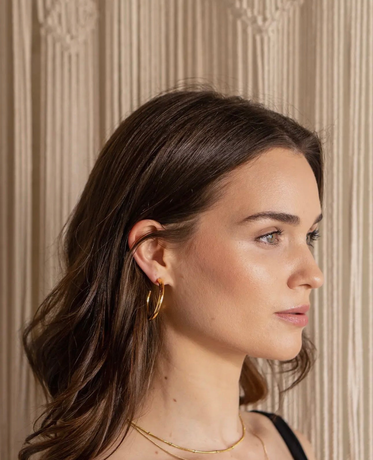 DESIGNER NOTE This updated new design is going to be your new everyday hoop. The gold, sleek design will play up any outfit and add sophistication to your look.