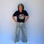 These casual denim pants combine comfort and fun with a drawstring waist for an adjustable fit and wide legs that keep you breezy all day. The playful leopard print side accents add a wild twist, while convenient side pockets keep your essentials close. Perfect for effortless style with a touch of attitude.