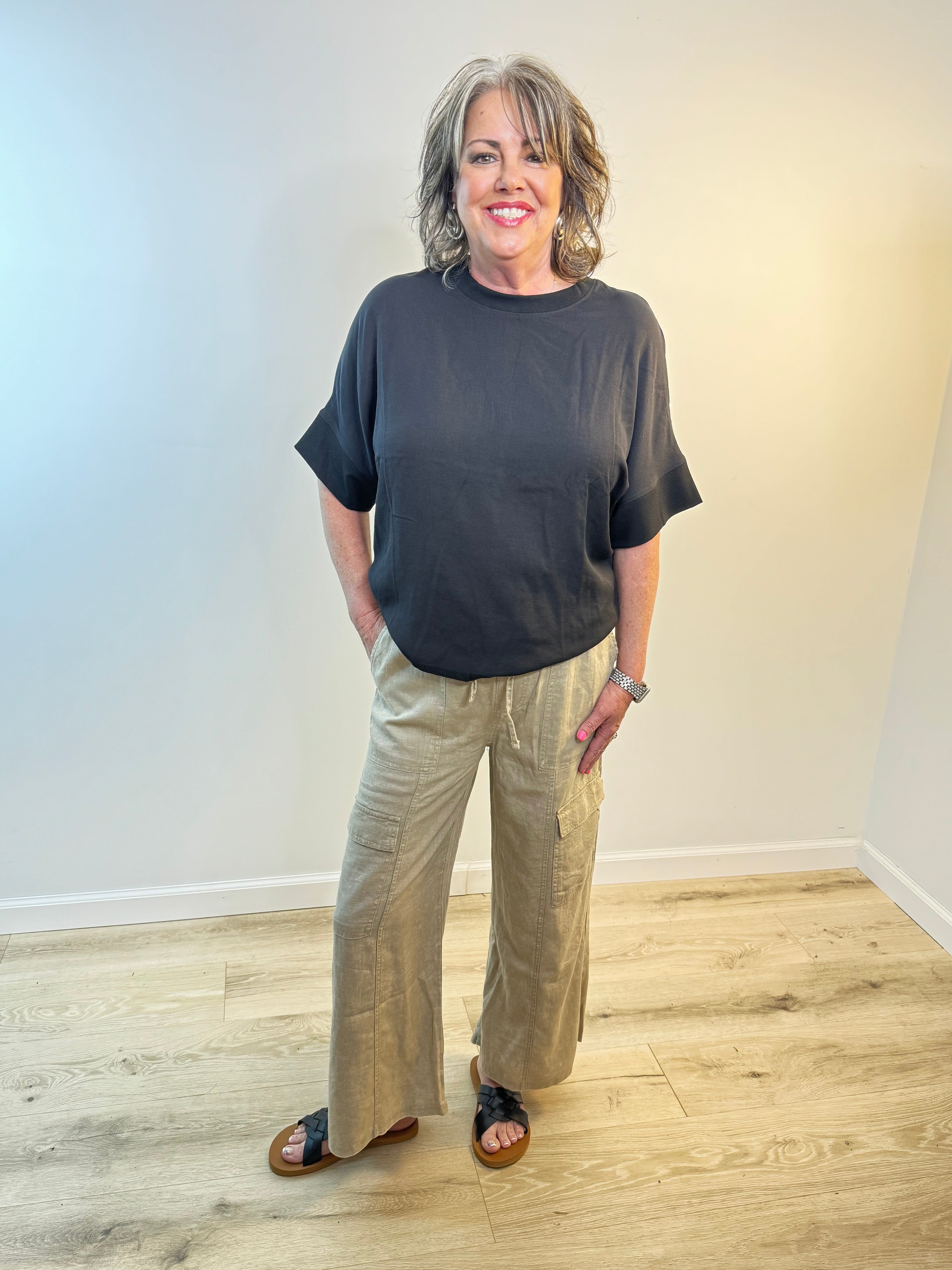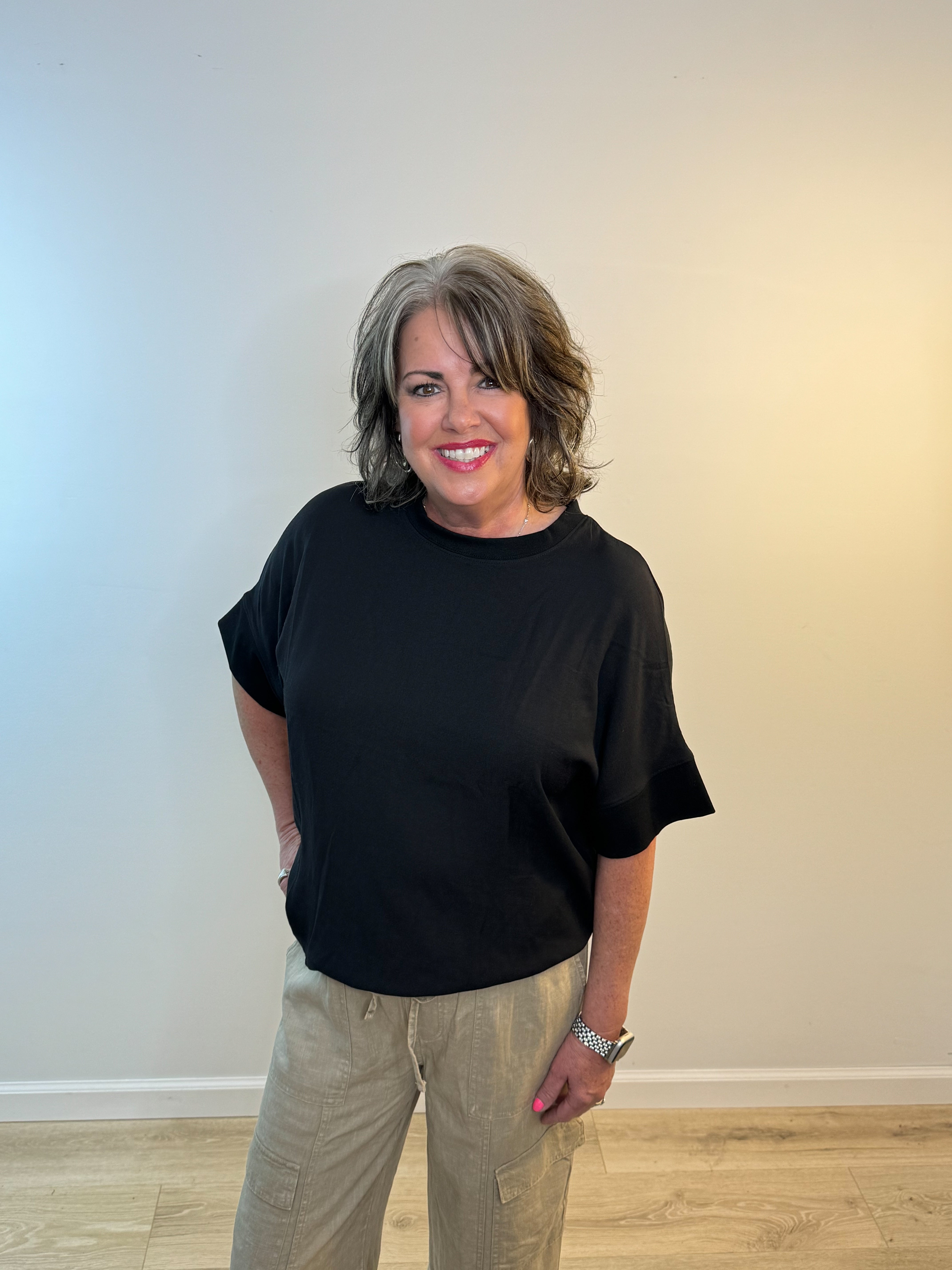 This lightweight women's blouse is the perfect addition to any wardrobe. Featuring a round neck and loose-fitting drop shoulder design, this blouse is both comfortable and stylish. The detail hem around the sleeves adds a touch of elegance to the piece. Made from 100% polyester, this blouse is easy to care for and drapes beautifully on the body. Pair it with jeans for a casual look or dress it up with a skirt for a more formal occasion. This versatile blouse is a must-have for any fashion-forward woman.