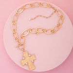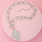 Ermine Styled Pearl Embellished Cross Pendant Necklace