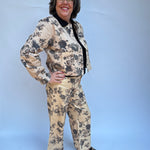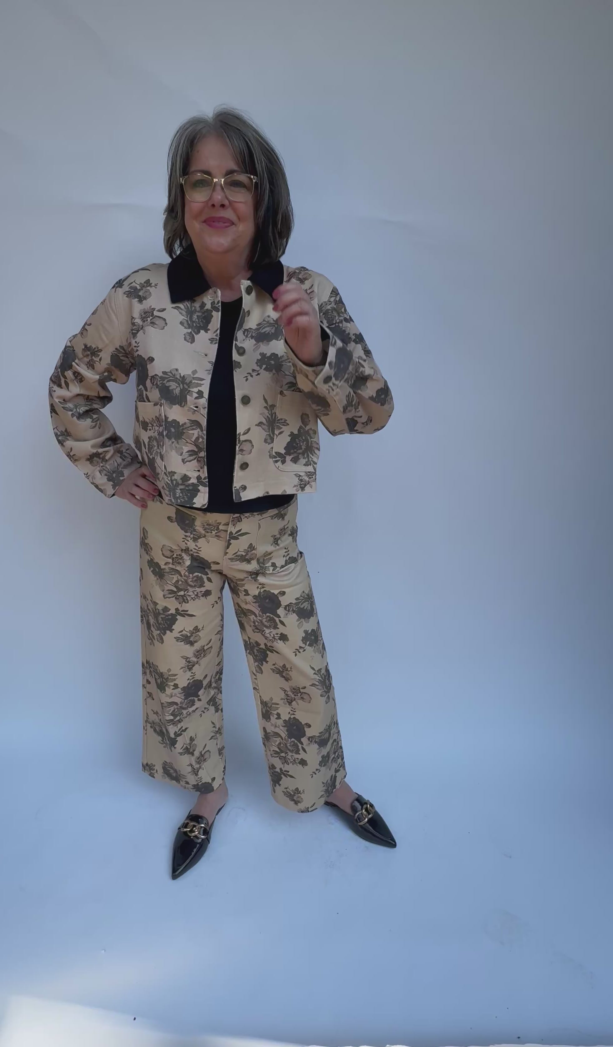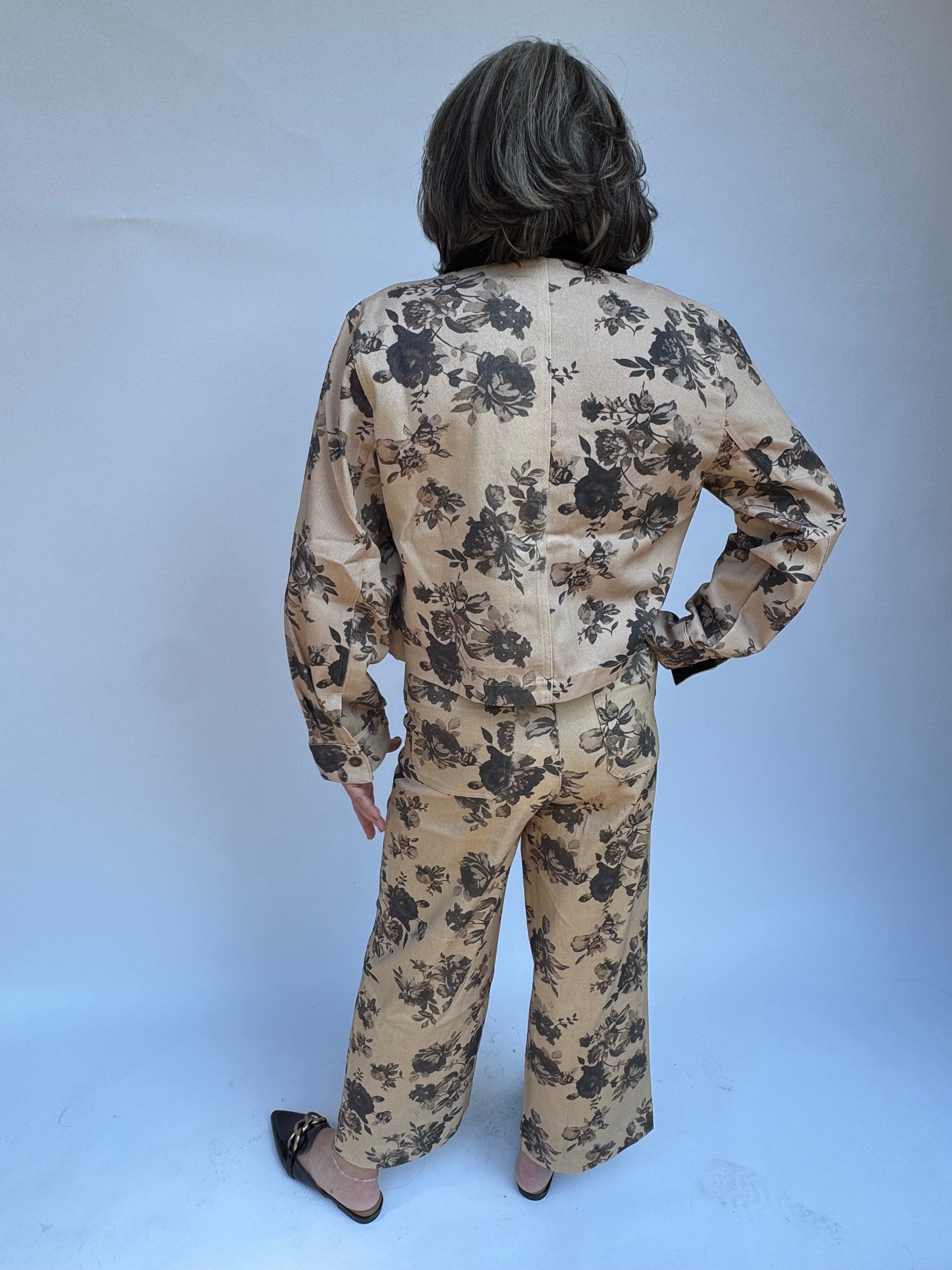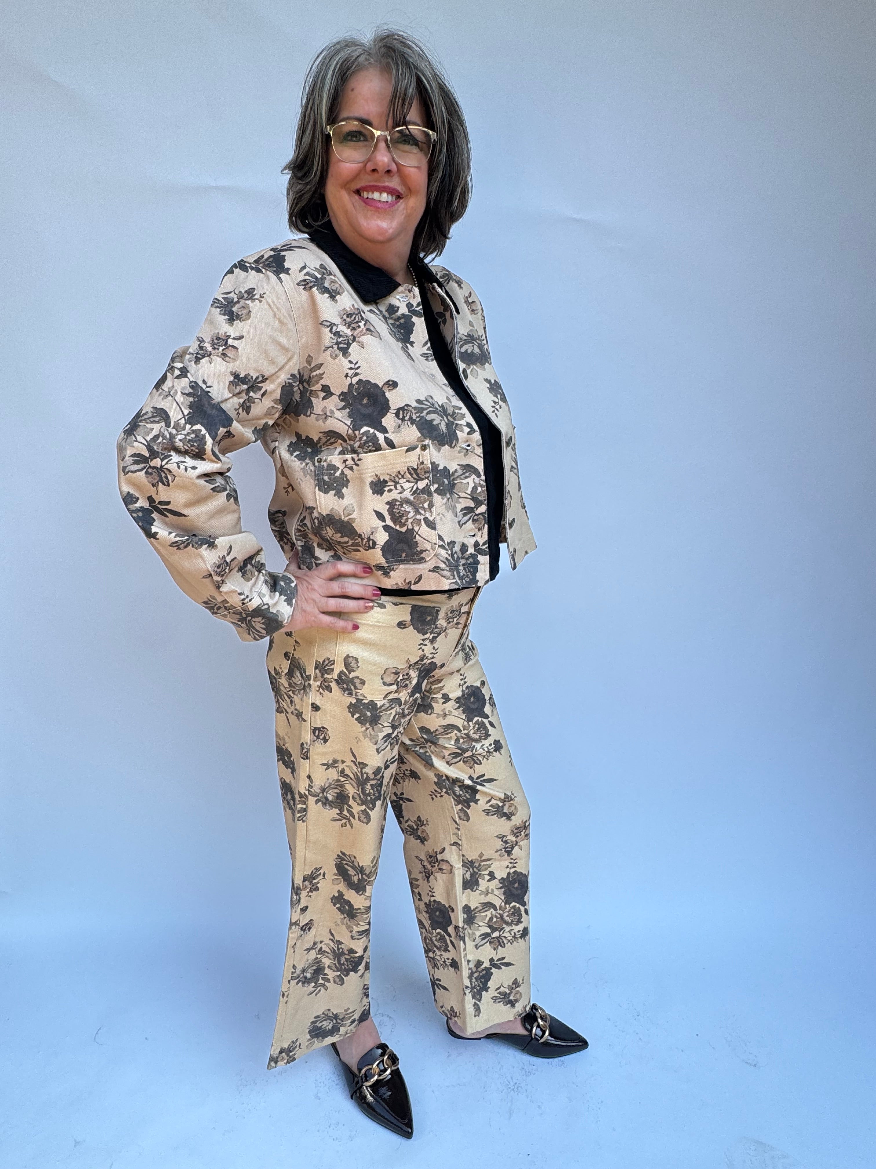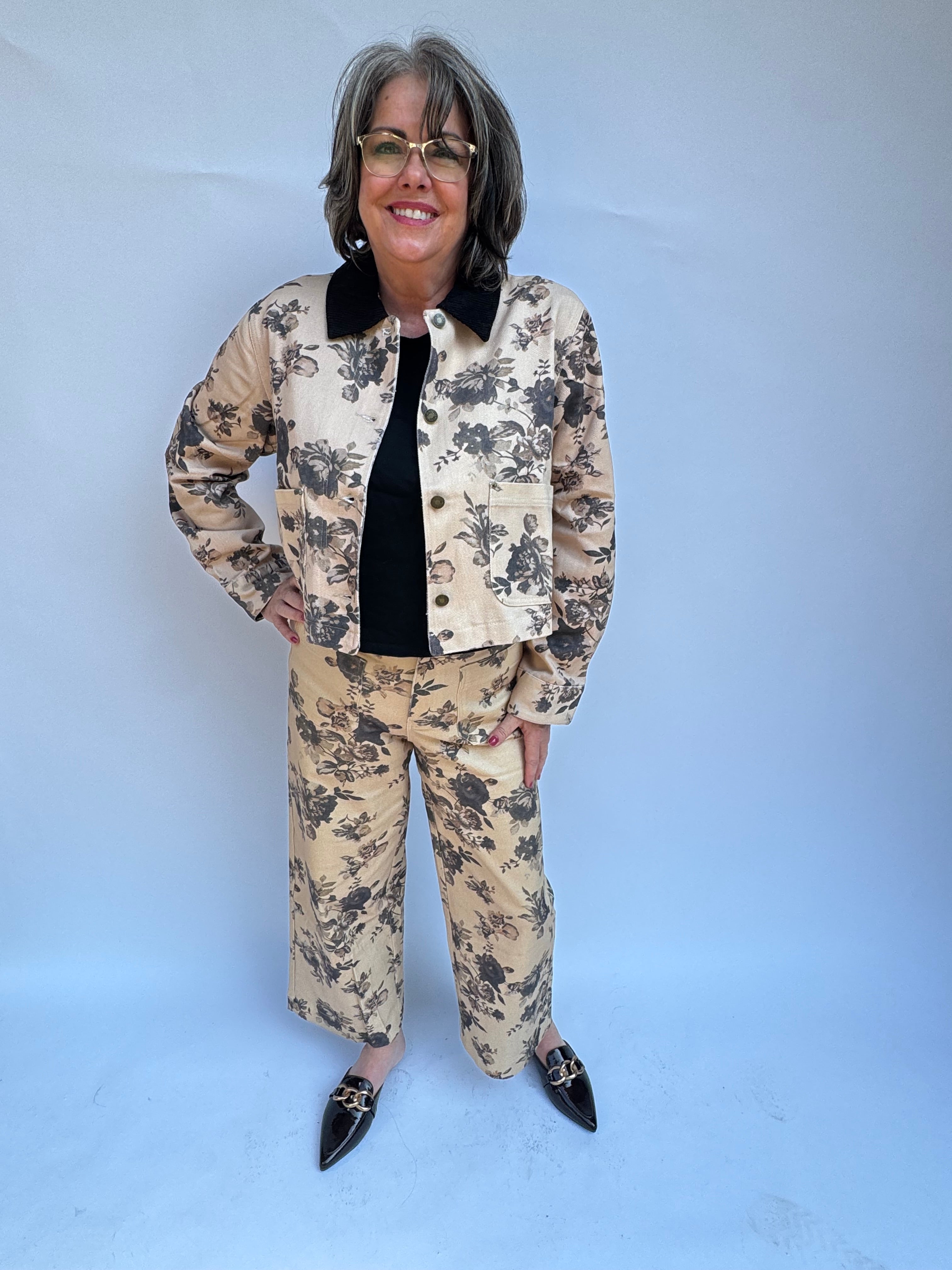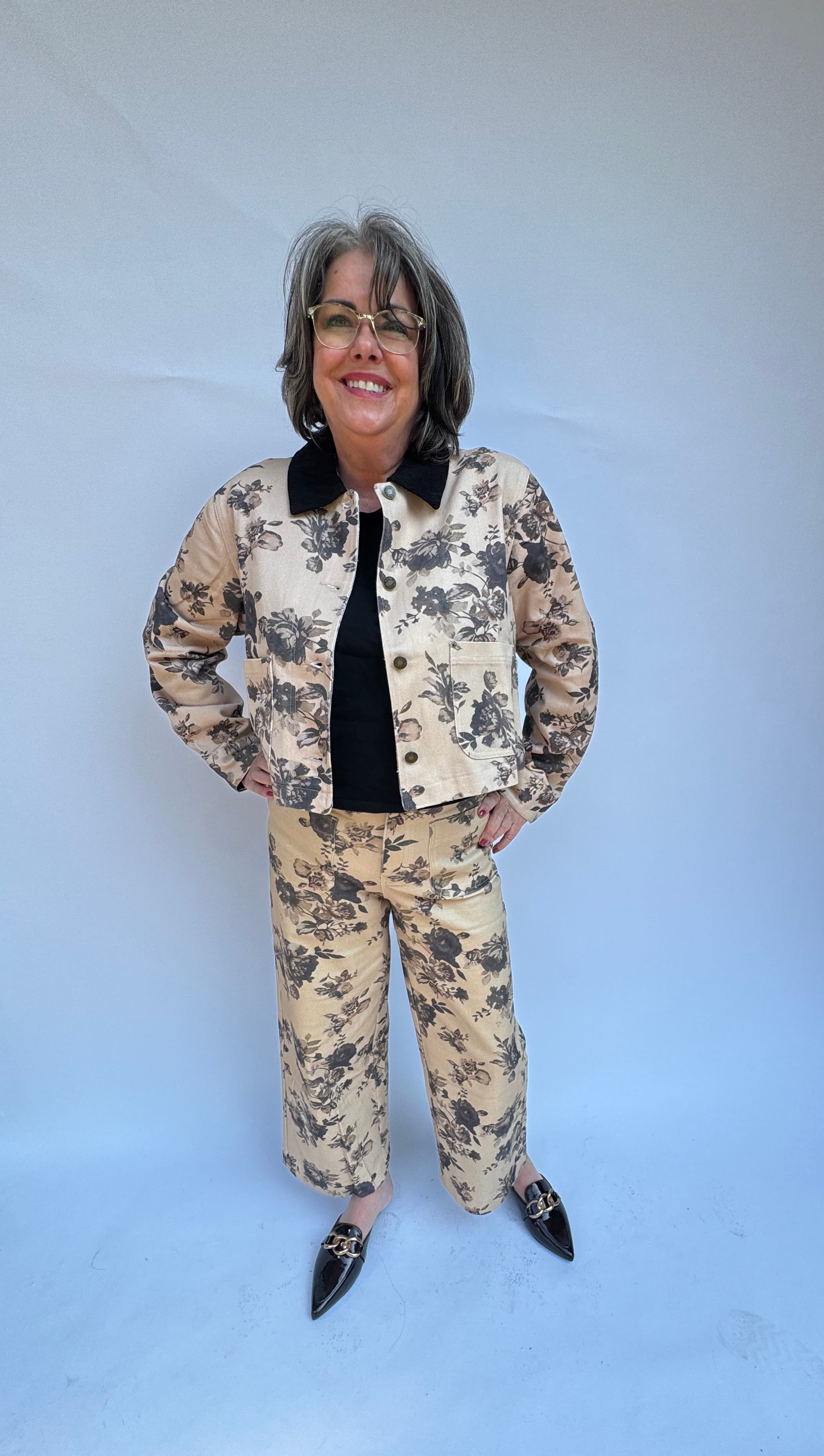 Add a splash of charm to your outfit with this playful floral long-sleeve jacket. The mid-waist cut pairs perfectly with the contrasting collar band, adding a fun twist to your look. Front button closure and handy patch pockets combine style and practicality for everyday adventures.