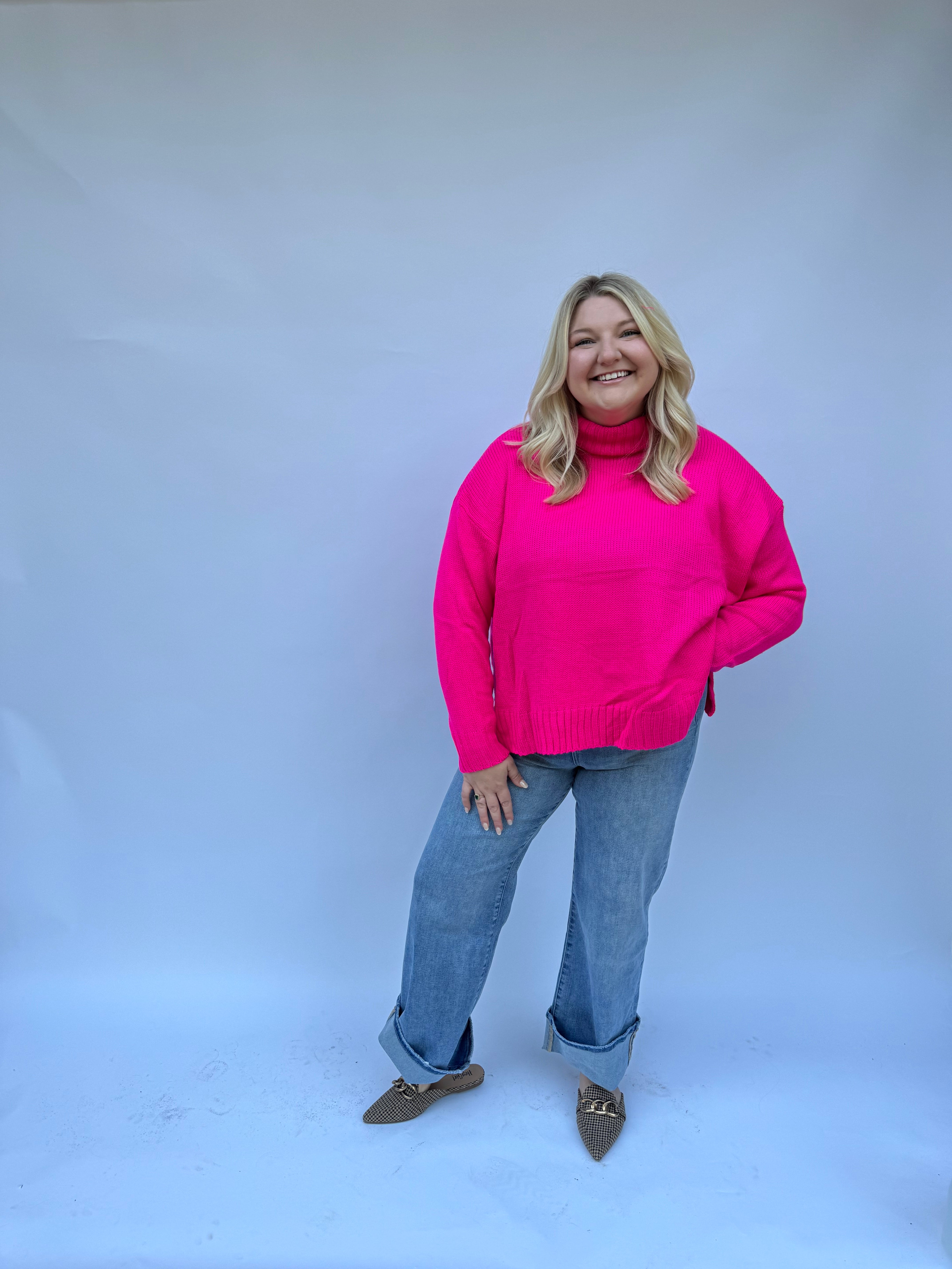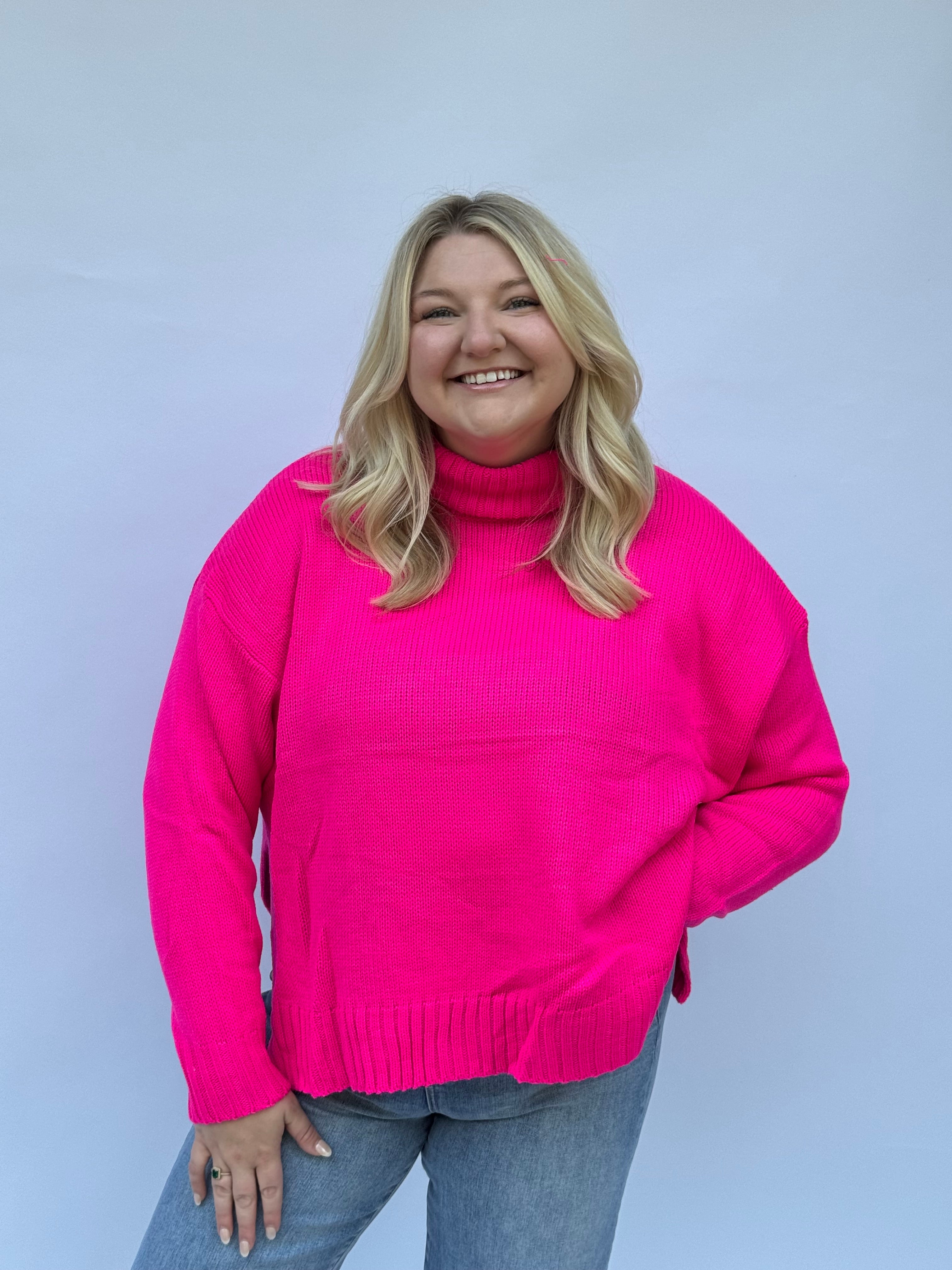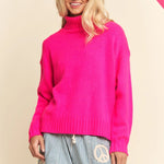 Wrap yourself in cozy charm with this oversized knit turtleneck sweater, crafted in rich seasonal shades that brighten any outfit. Its relaxed fit and ribbed trim keep things comfy and cute, while the fold-over neck adds a playful touch. Whether paired with your favorite jeans or polished pants, this sweater makes layering feel fresh and fun for every day.