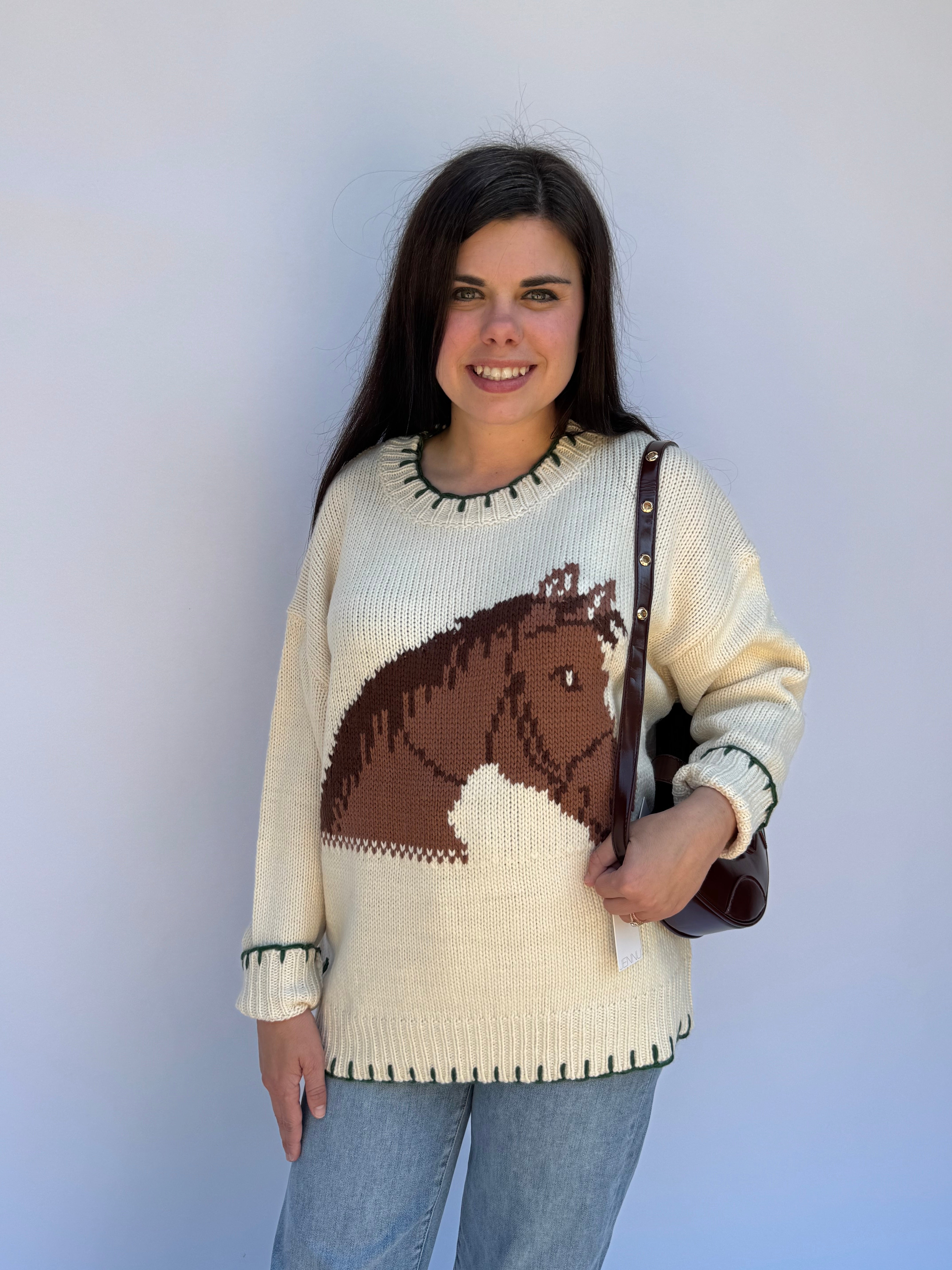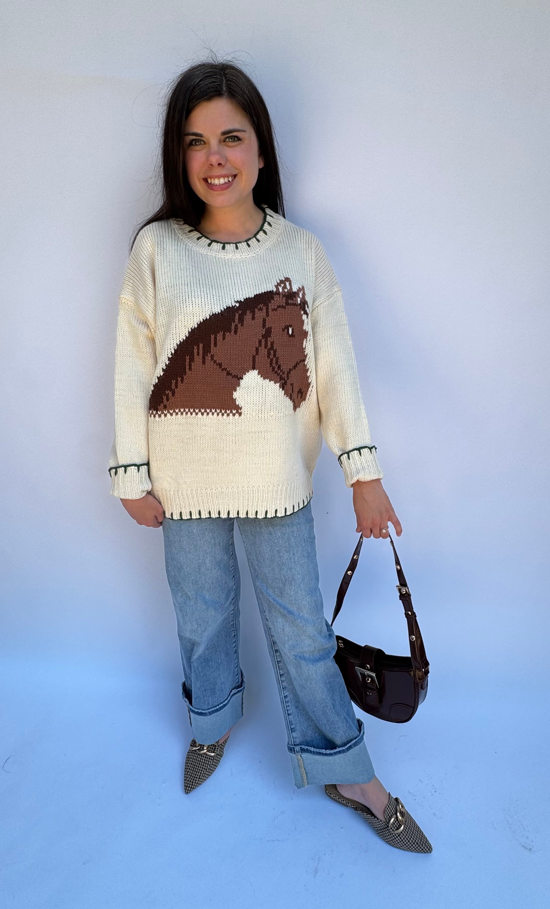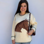 Stay cozy and stand out with the Howdy Girl Horse Sweater. Featuring a round neck and long sleeves, this sweater adds a fun twist with its bold green contrast stitching. The playful “Howdy Girl” embroidery on the back brings a touch of western charm that's perfect for any casual day. Comfortable, unique, and ready to brighten your wardrobe!