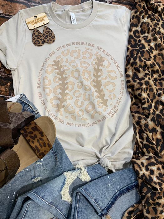 Leopard Baseball Graphic T printed on Canvas Heather Dust color shirt. THIS IS A PRE-Order meaning you are paying in advance to get a discounted price.