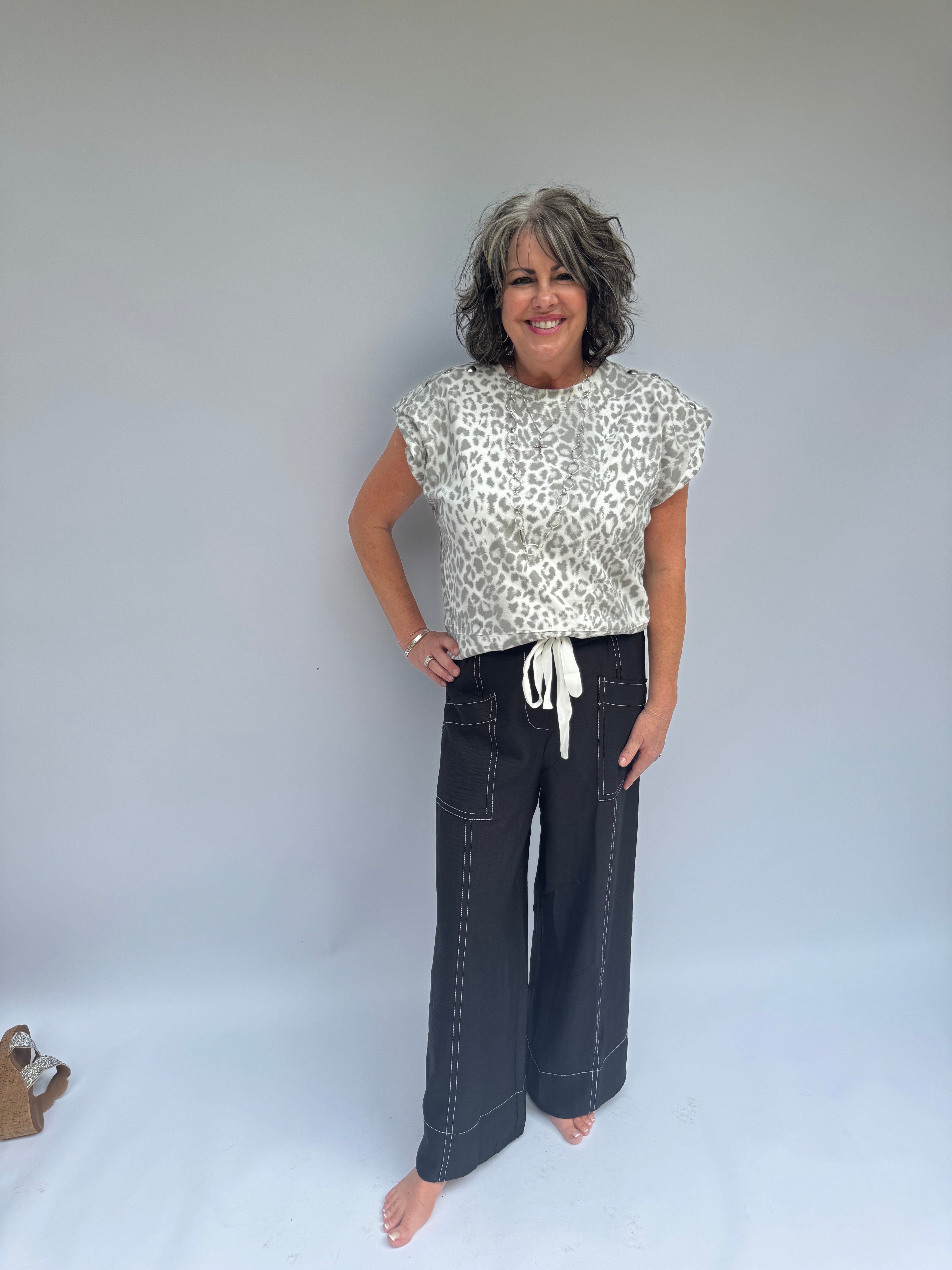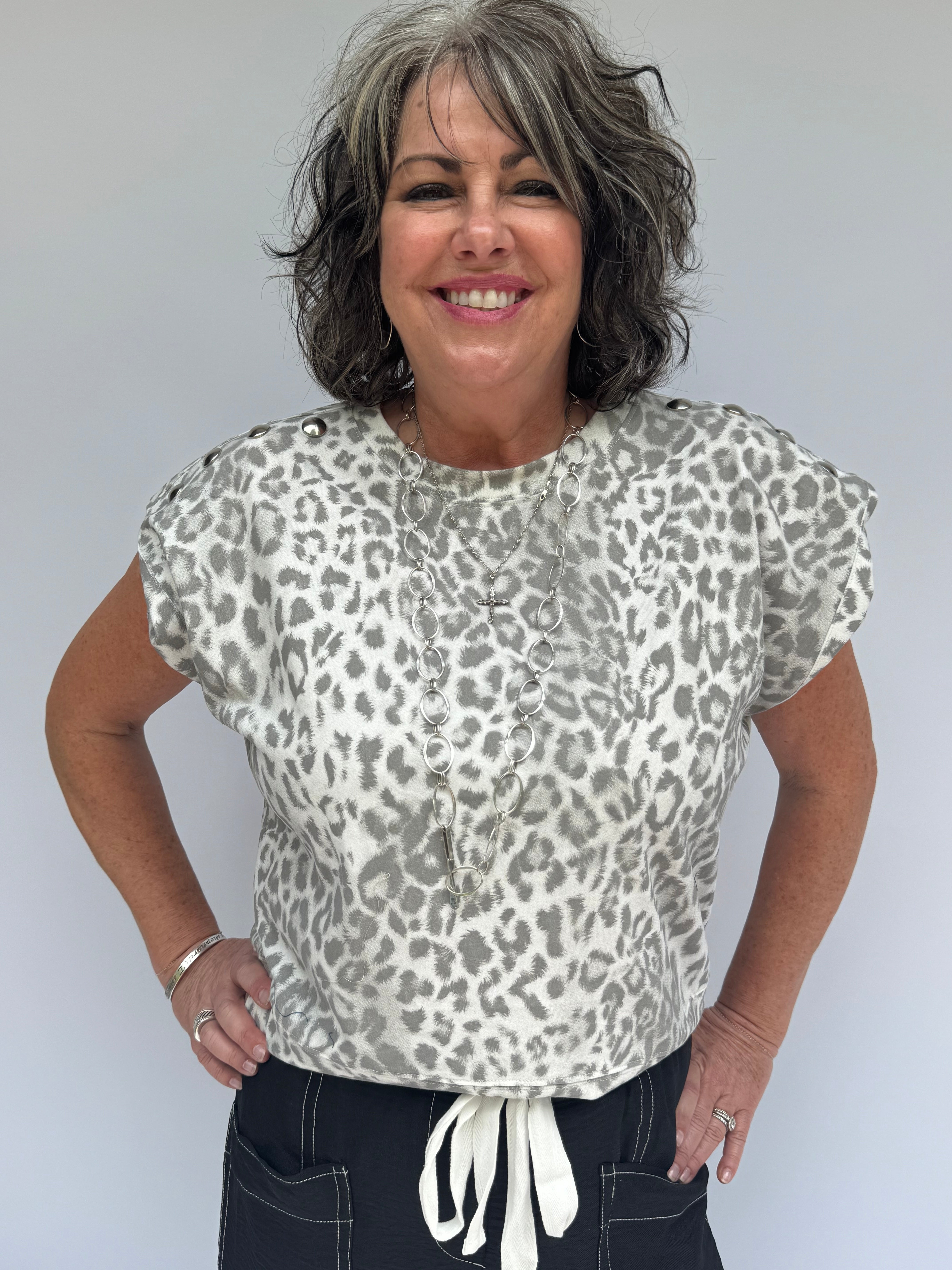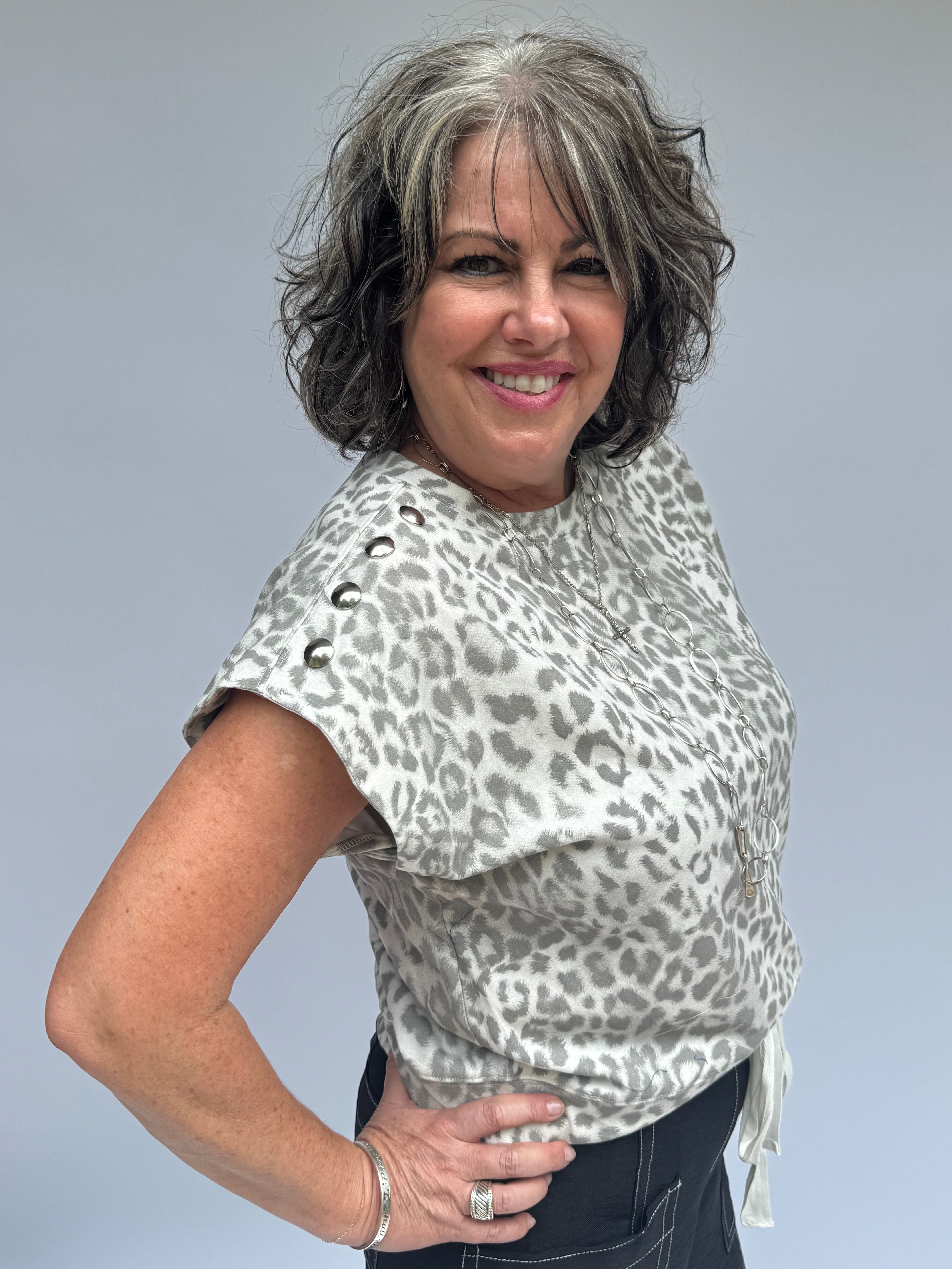 Upgrade your casual look with this leopard print pullover top! Made from soft jersey knit, this top features stud-accented shoulders and is unlined for a lightweight feel. Perfect for any occasion, this non-sheer top is sure to add a touch of edgy style to your wardrobe. Roar with confidence in this must-have pullover.