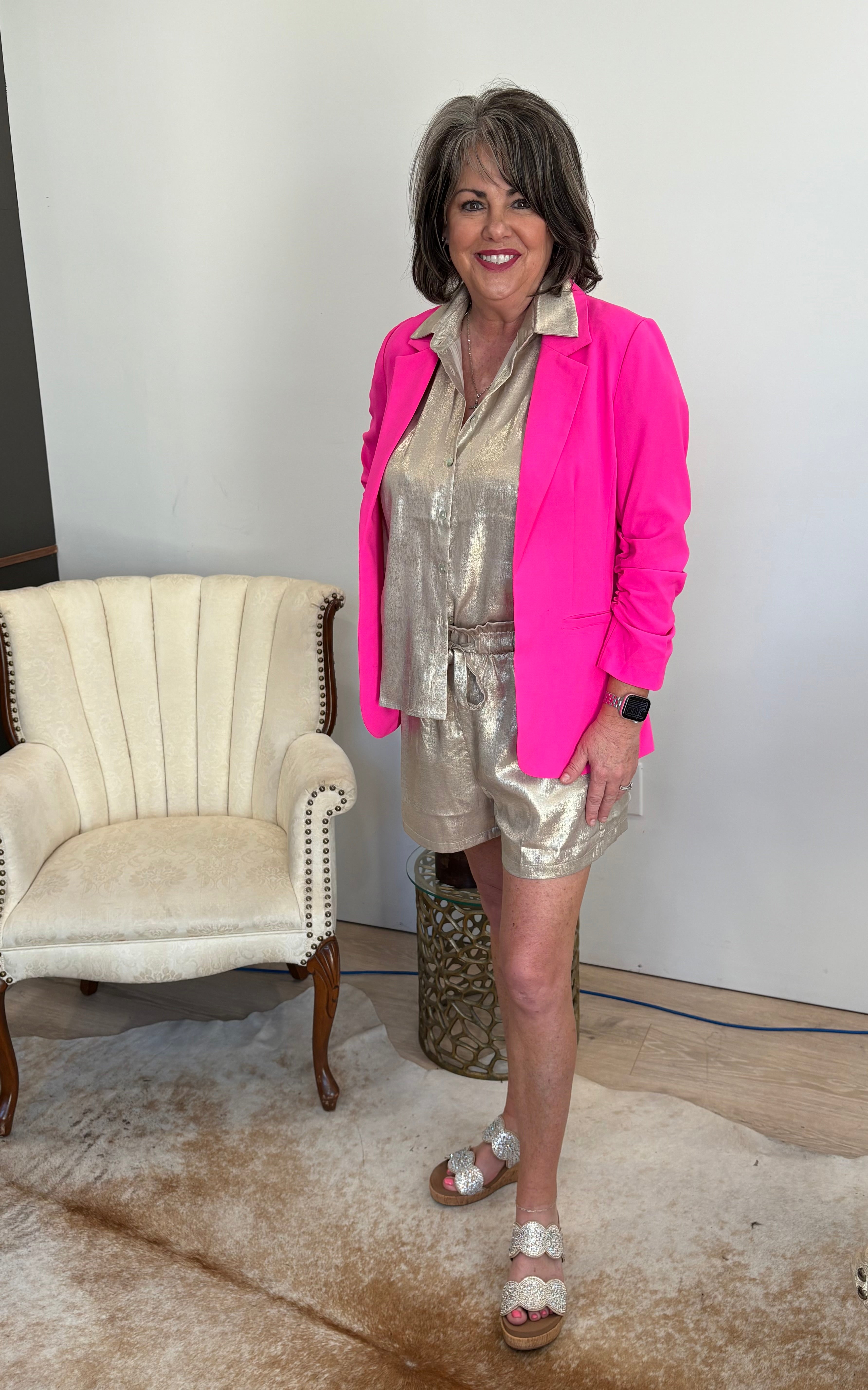 I wore the sporty pink chic dress while on vacation, and absolutely loved it. The color is a stunning vibrant pink. The fabric is a stretchy weave material that left me feeling comfortable and confident all day. The dress is a beautiful statement piece that is perfect for a multitude of occasions.