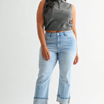 Mica - Light Beach Blue Mid Rise Cuffed Jean Curvy