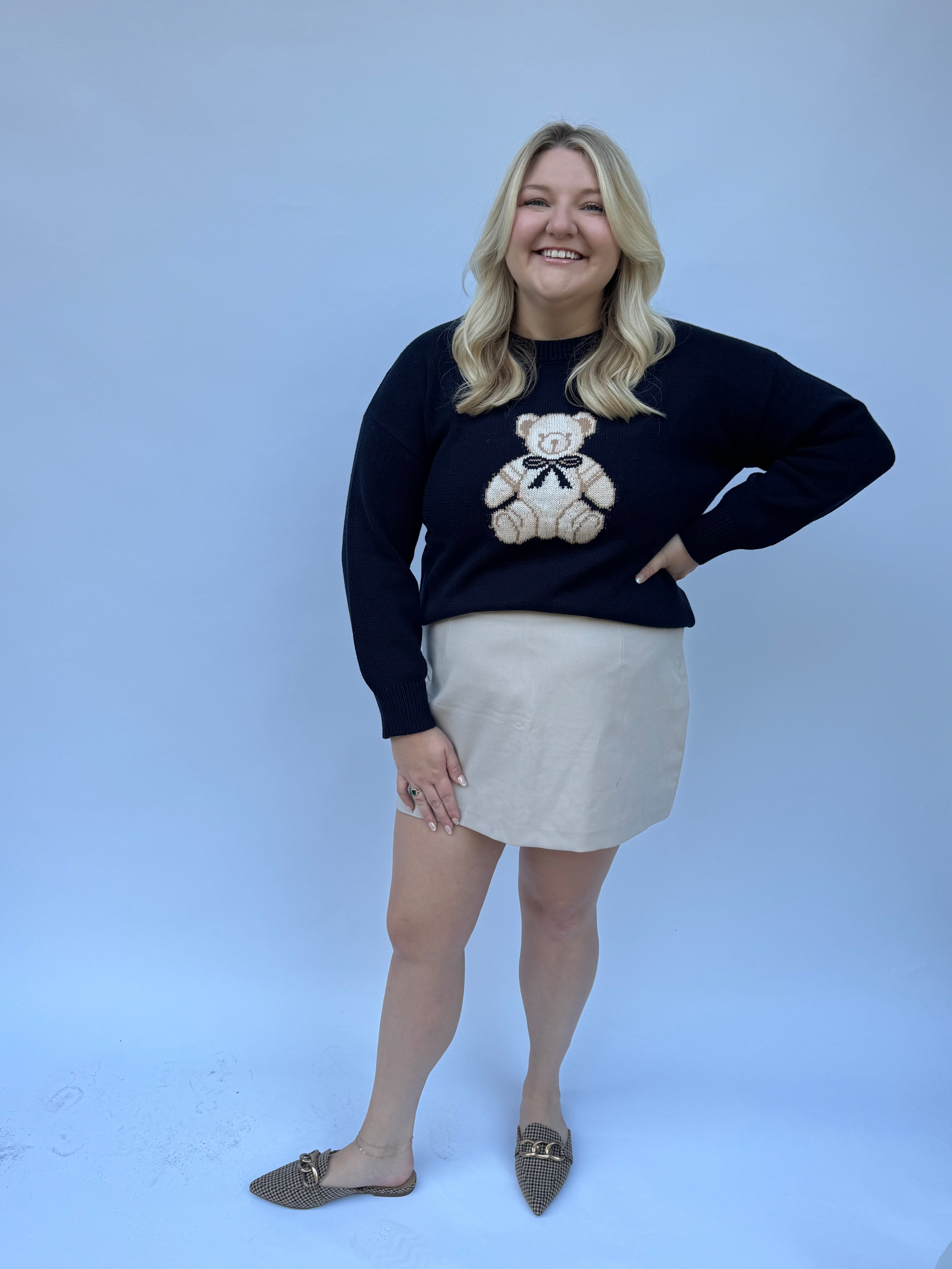 This cozy navy sweater features a playful bear graphic front and center, adding a touch of fun to your casual wardrobe. With its comfy long sleeves and classic round neck, it’s perfect for staying warm and stylish on chilly days. Enjoy a snug fit that’s ideal for everyday adventures or relaxed weekends.