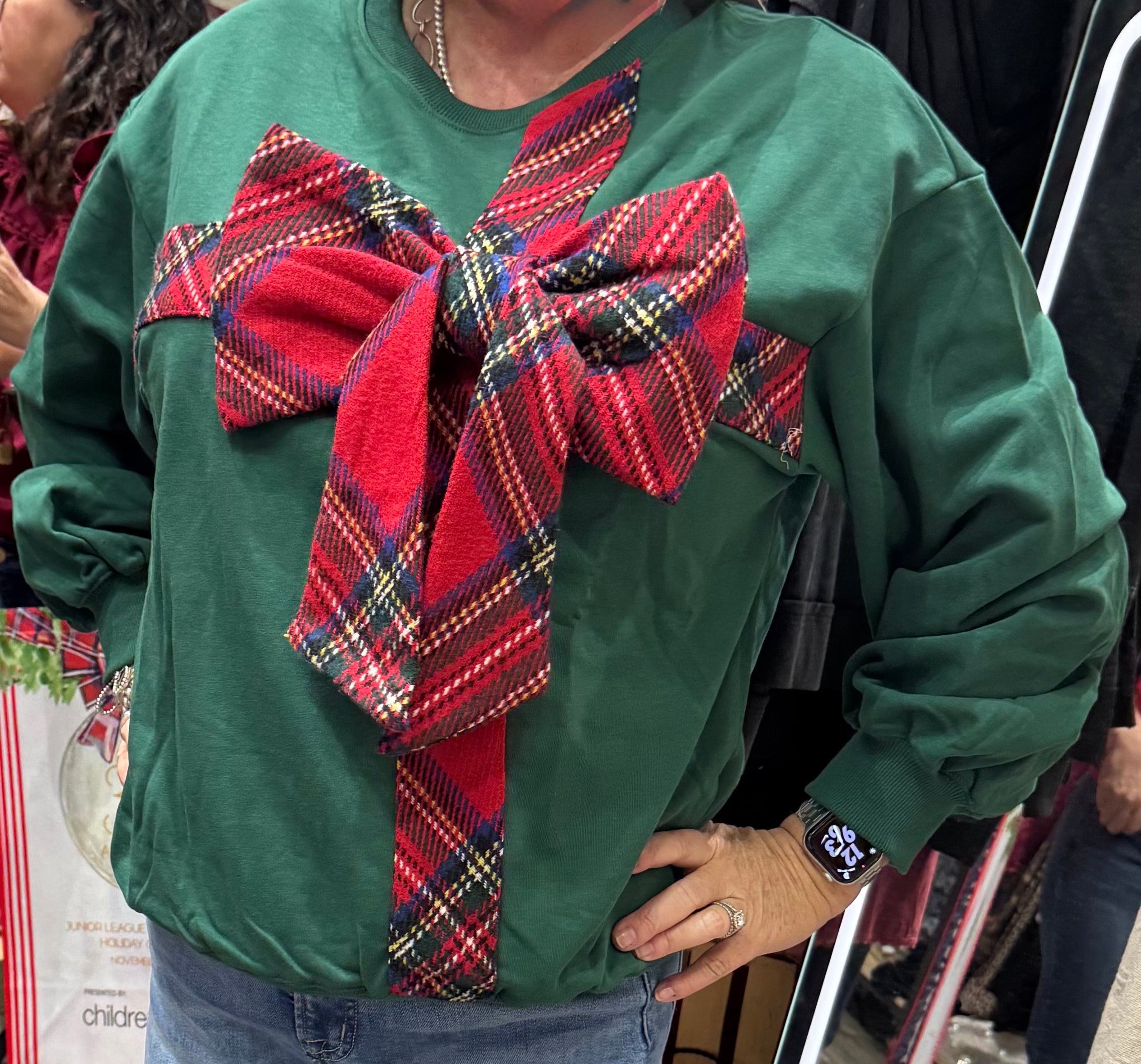 Get festive and cozy with the Put a Plaid Bow on Me Christmas Sweatshirt! This oversized sweatshirt features a charming ribbon bow on the front, adding a playful holiday touch to your look. Made from a soft blend of 85% cotton and 15% polyester, it’s perfect for staying warm and stylish during the season’s celebrations. Embrace the holiday spirit and wrap yourself in comfort and fun!