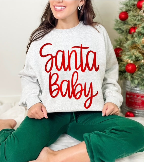 Spread holiday cheer in shimmering style with this Santa Baby metallic tshirt. Featuring eye-catching metallic accents that catch the light with every move, this playful piece brings festive fun to your seasonal wardrobe. Perfect for ugly sweater parties, holiday gatherings, or anyone who loves to sparkle while celebrating. Cozy, comfortable, and unapologetically merry—because the best part of the season is having fun with fashion.