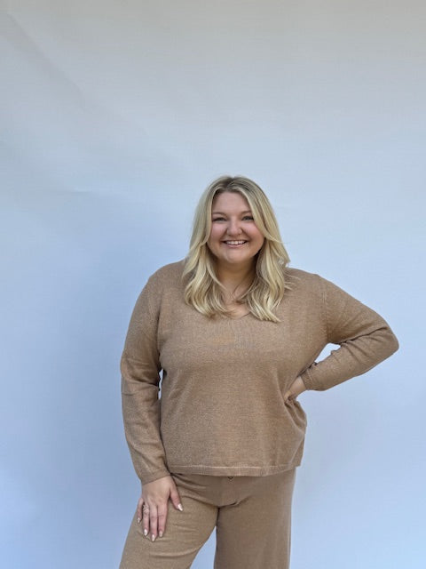 Shine bright and stay cozy in this sequined knit sweater. Featuring long sleeves and a flattering V-neckline, it offers a straight fit with playful side splits that add a touch of fun and movement. Perfect for turning heads and keeping comfy all day long!