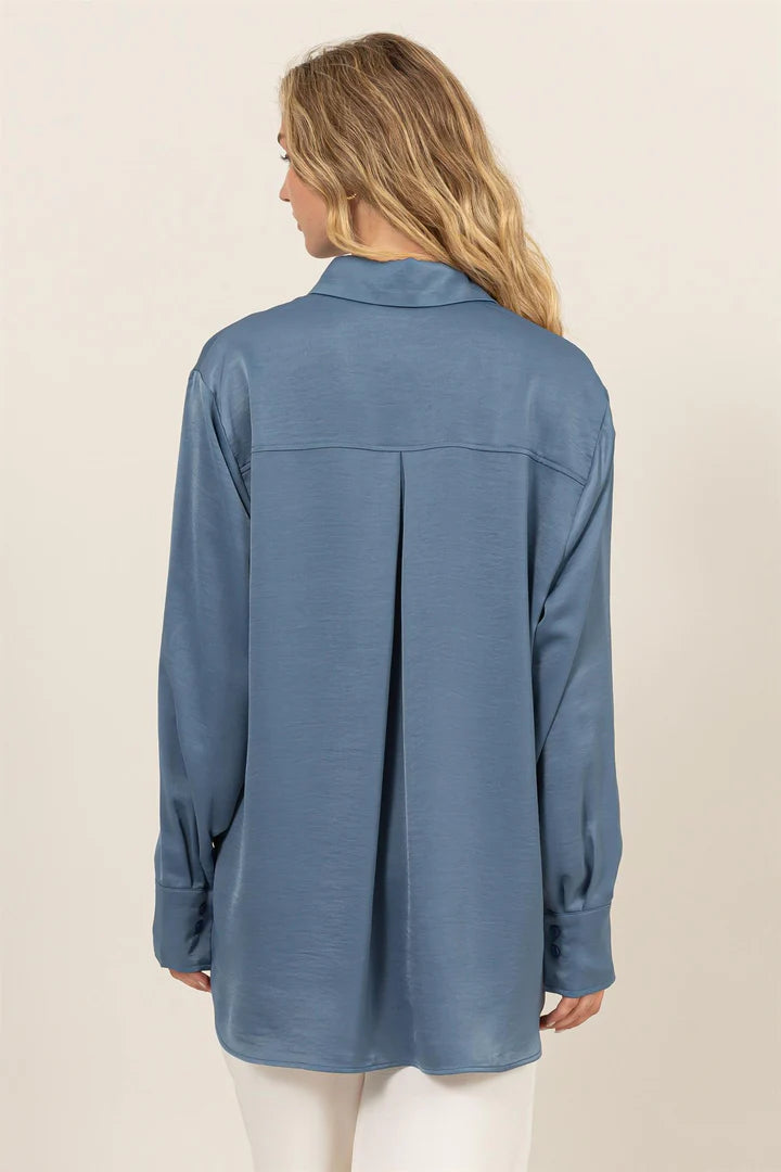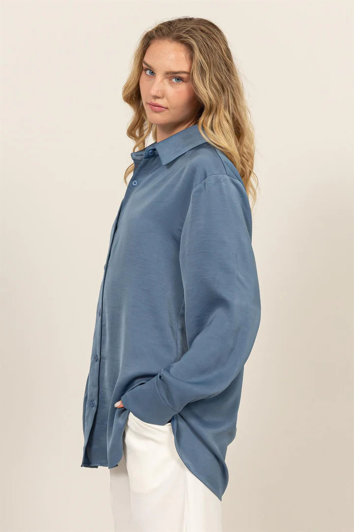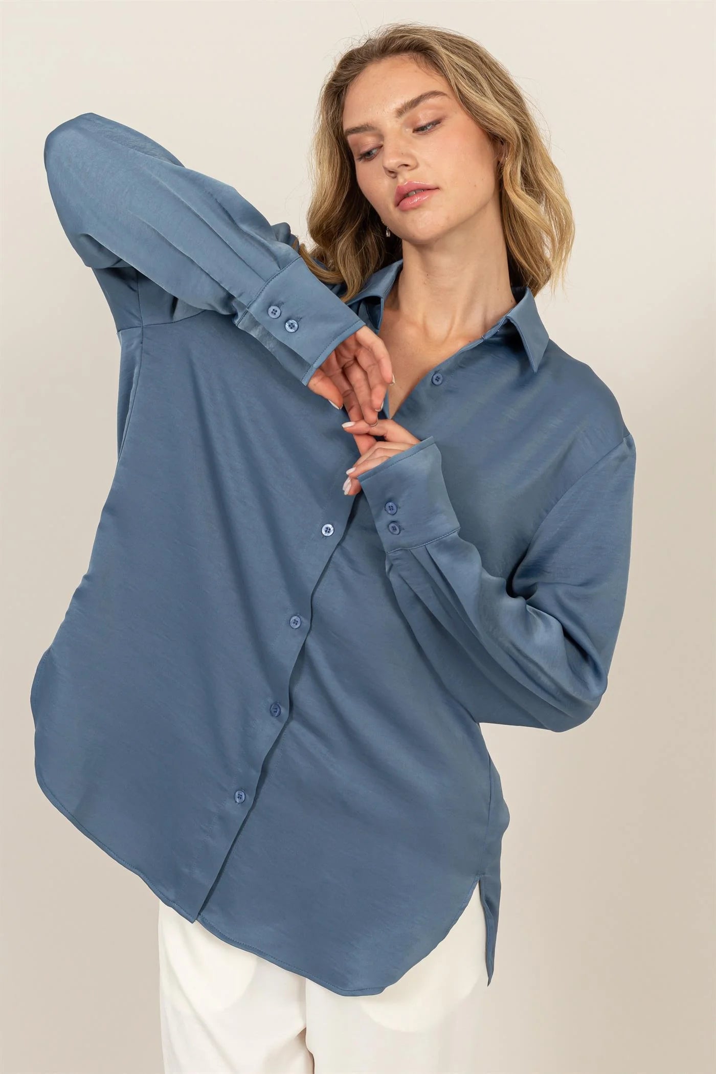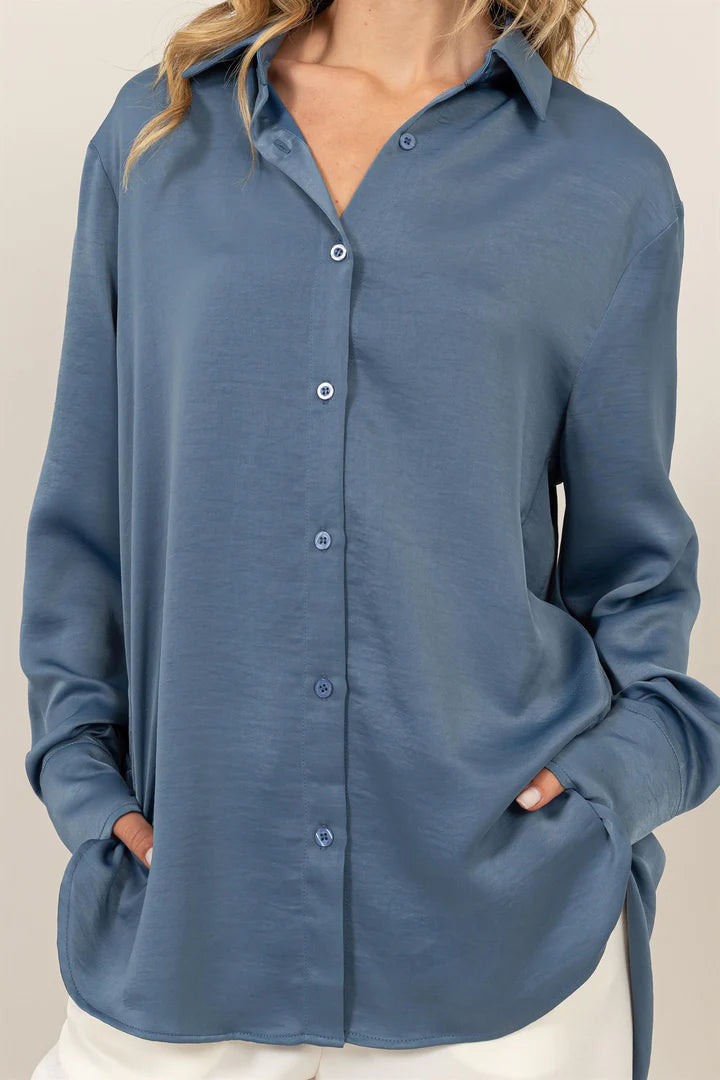 Experience elegance and comfort with our classic button-up shirt. Its relaxed fit and smooth, silky texture create a beautiful drape on the body. Perfect for casual or semi-formal occasions, pair with trousers or jeans for a versatile look. Buttoned cuffs and a point collar add timeless sophistication. Made with 100% polyester.