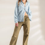STRIPED BUTTON DOWN SHACKET
