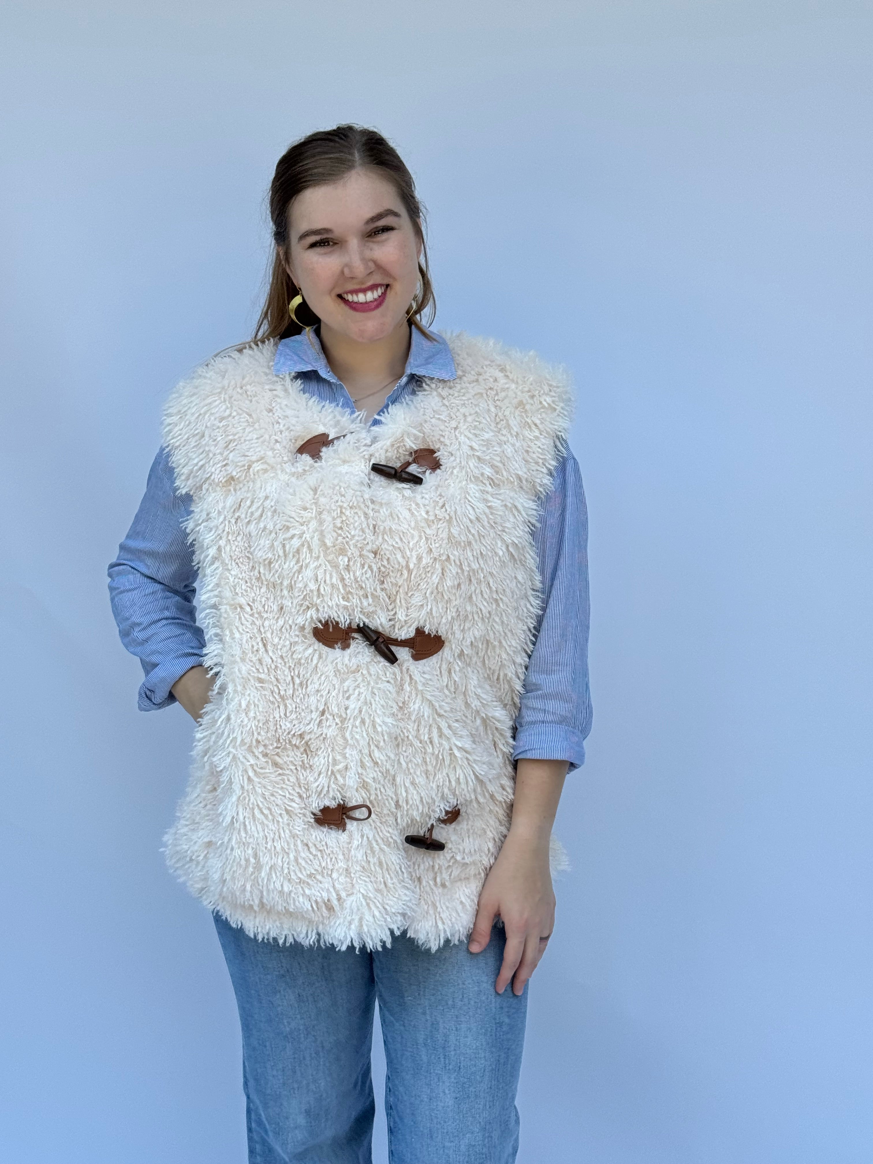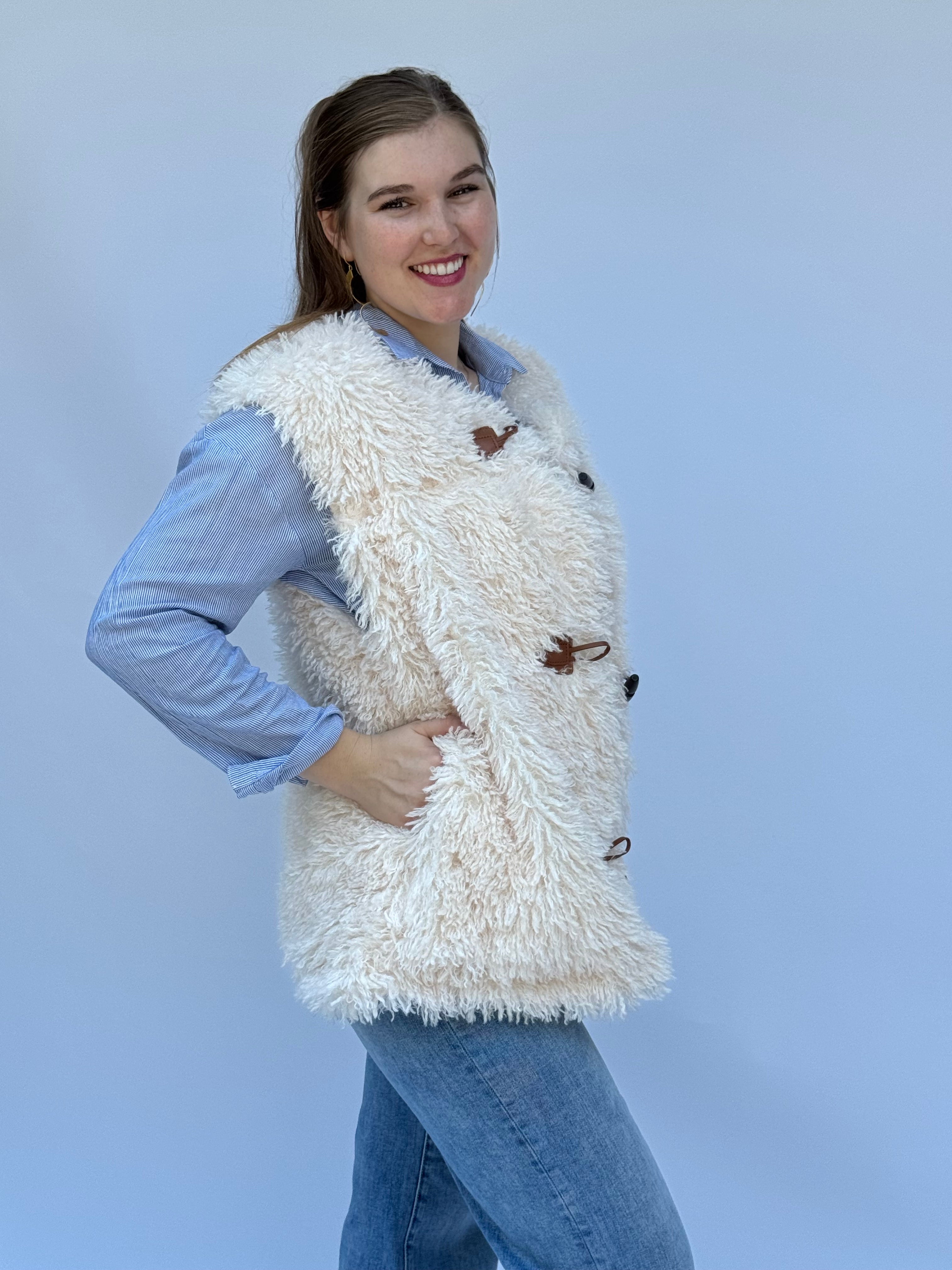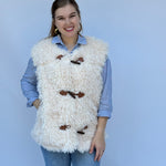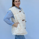 Luxurious Cream Sheepskin Toggle Vest, Wrap yourself in warmth and elegance with our Luxurious Cream Sheepskin Toggle Vest. This cozy vest is crafted from soft, premium sheepskin fur, providing unparalleled comfort while keeping you snug during chillier days. Its beautiful cream color adds a touch of sophistication, making it an ideal layering piece for any wardrobe.