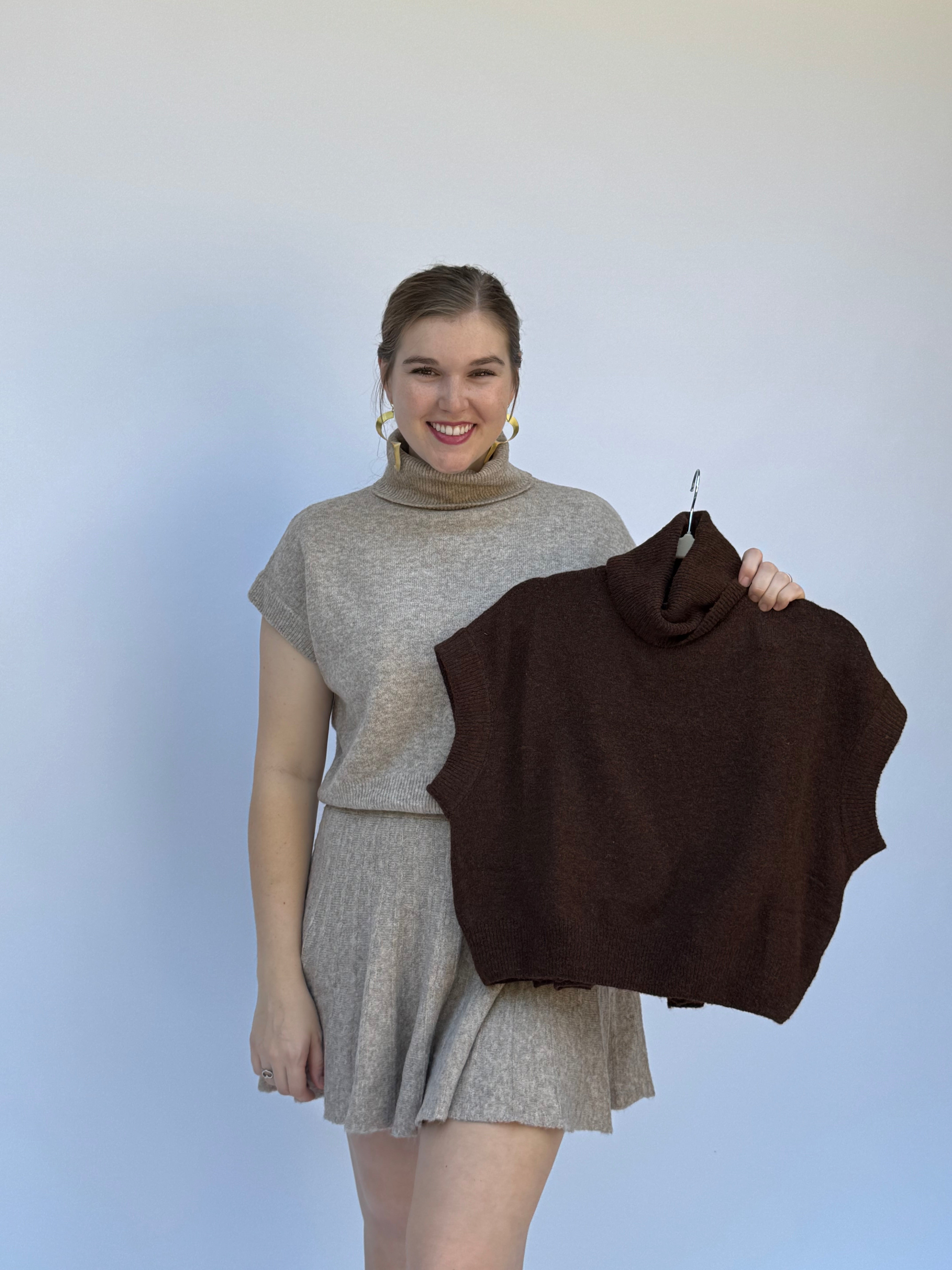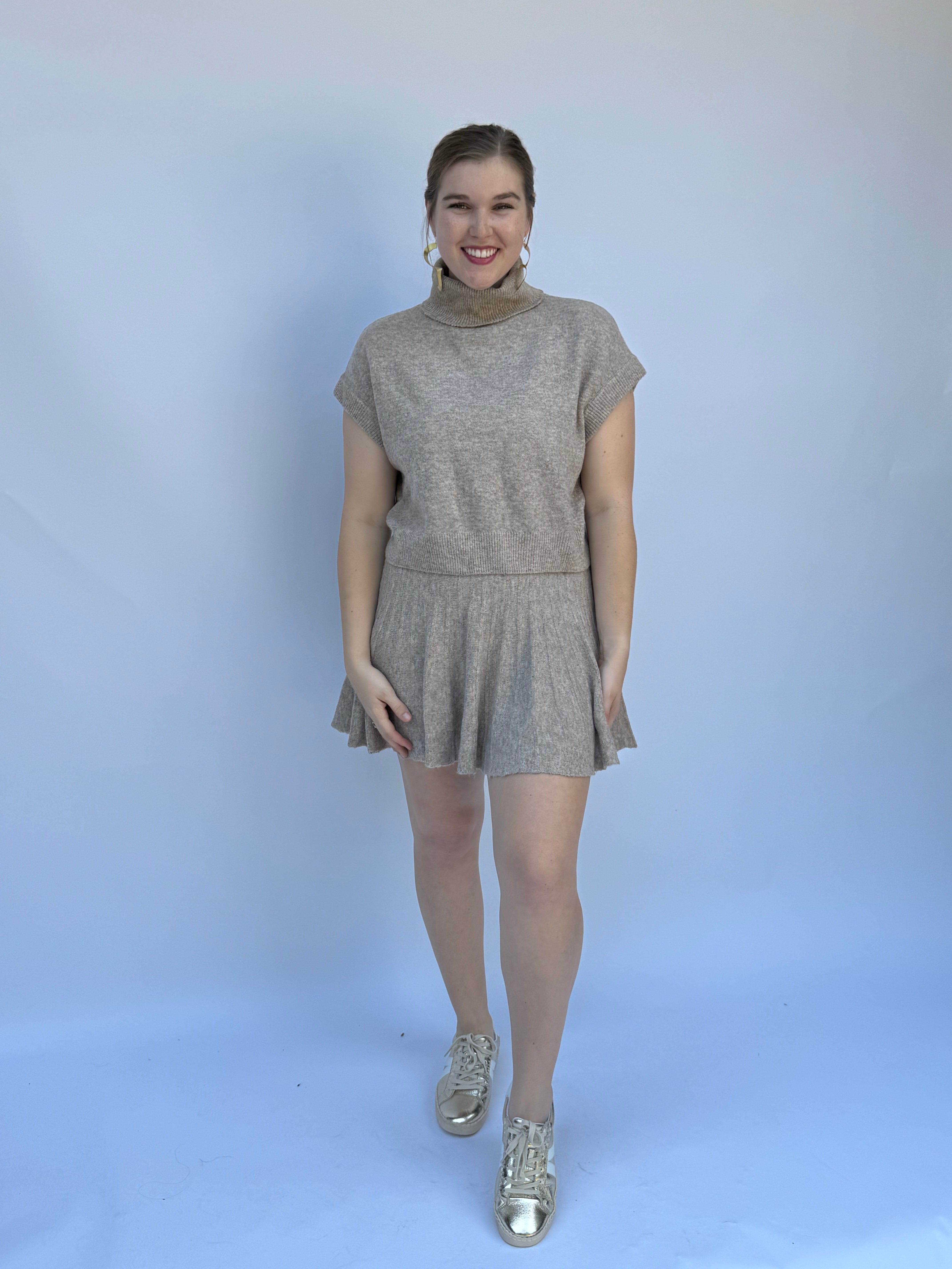 This charming set pairs a cozy turtleneck top with structured cap sleeves and a lively pleated skirt that dances with every step. Its snug fit balances comfort and style, making it a perfect choice for playful days and elegant nights. Mix and match with your favorite boots or throw on a sleek blazer to switch up the vibe effortlessly. A delightful outfit that keeps you looking chic from brunch through evening fun!