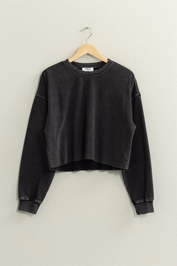 Indulge in the ultimate comfort with our Mineral Washed Terry Fleece Sweatshirt. Featuring a rounded neckline, drop shoulders, and long wide sleeves, it offers the perfect slouchy look. The relaxed-fit bodice and back yoke detailing add effortless style. Crafted with a mix of 80% cotton and 20% polyester, and contrasted with 95% cotton and 5% spandex, this sweatshirt is the epitome of luxury.