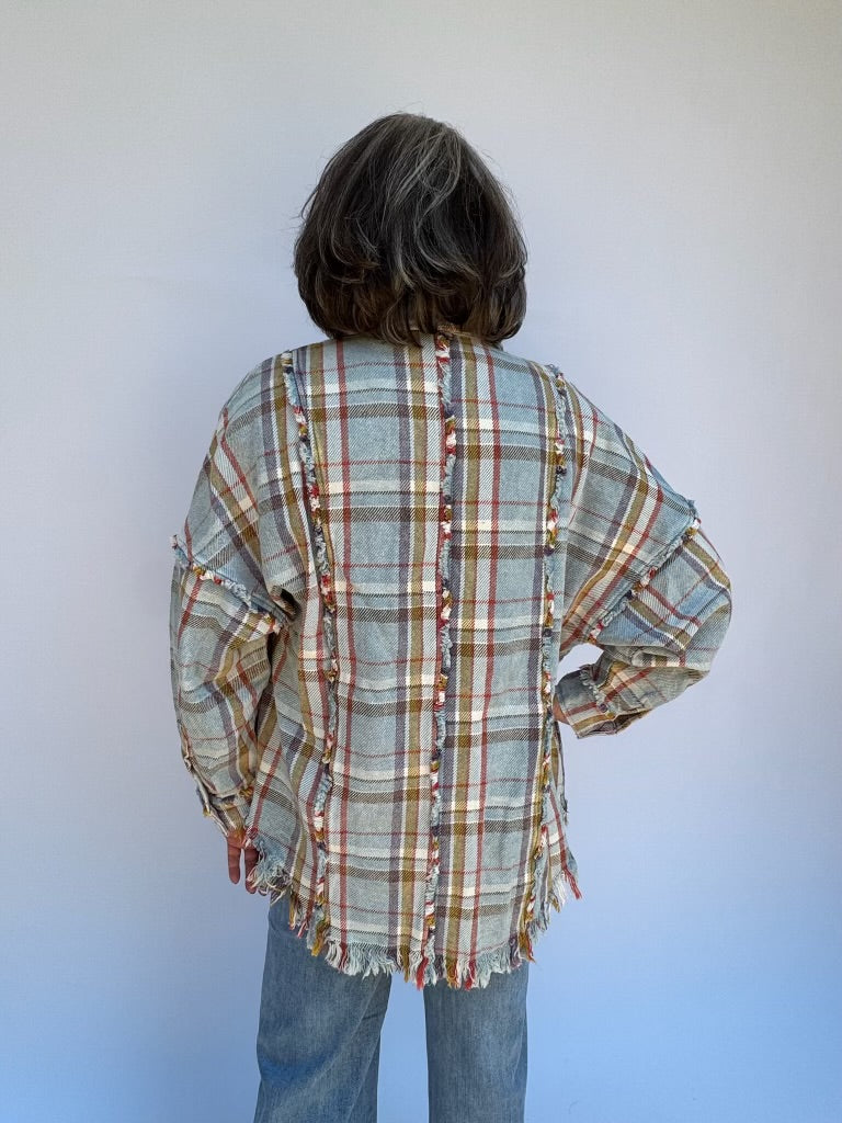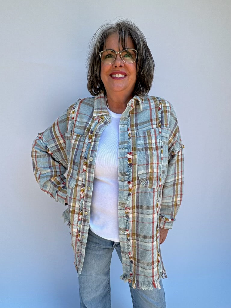 Add a splash of fun to your wardrobe with this Washed Plaid Jacket. Featuring snap buttons for easy on-and-off, its relaxed fit and soft washed fabric make it perfect for layering on chilly days. Whether you're heading out for an adventure or just lounging around, this jacket brings cozy style with a playful twist.