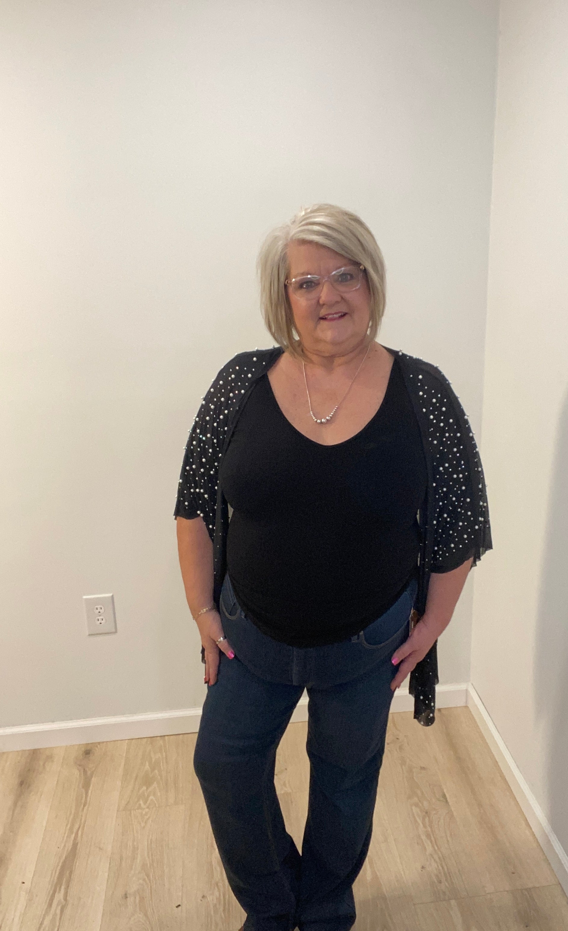 Love the paisley print top. Beautiful for spring and will carry over to summer with rolled sleeves.